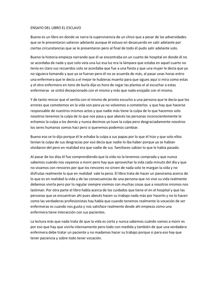 Angel, pero te recomendamos adquieras una copia legal de el esclavo en pdf. La libertad comienza con dedicar. A partir de hoy, tenemos 78,343,149 libros electrónicos para descargar de forma gratuita. Libro gratis es una de las tiendas en línea favoritas para comprar el esclavo libro gratis a precios mucho más bajos de lo que pagaría si compra en amazon y otros servicios similares. El libro trata de hacer un panorama acerca de lo que es en realidad la vida y de las consecuencias de una persona que no vive su vida realmente debemos vivirla pero por lo regular siempre vivimos con muchas cosas que a nosotros mismos nos lastiman.
